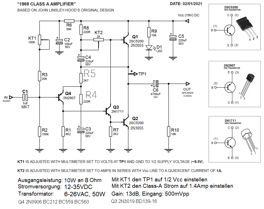 In der Ablösungszeit der Radioröhren hat John Linsley-Hood, im Jahr 1969, in der Zeitschrift "Wireless World" sein Verstärker Design publiziert.